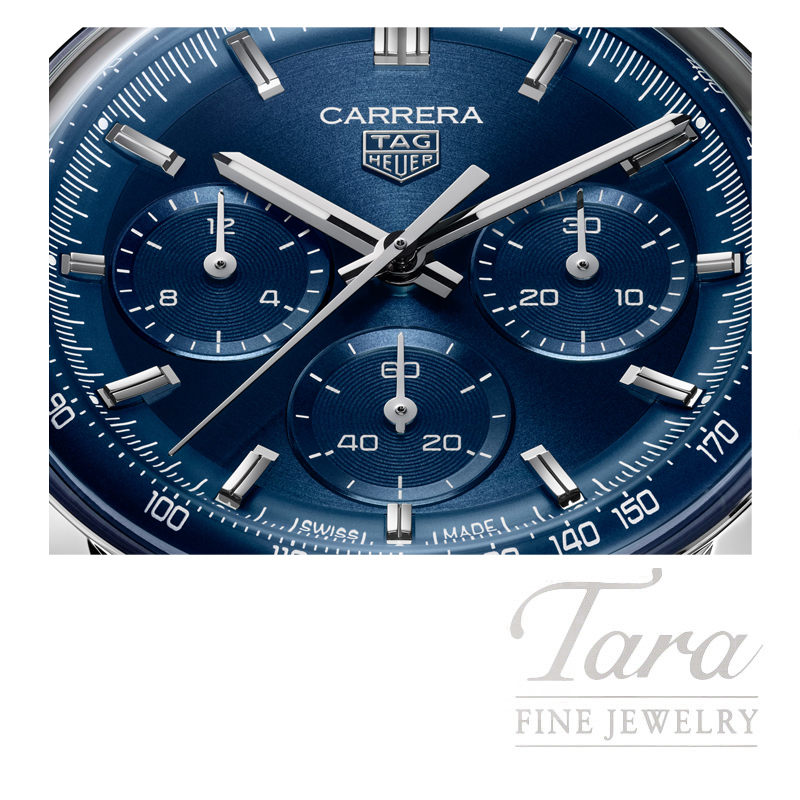 With its captivating blue circular-brushed dial, this 41mm TAG Heuer Carrera Chronograph combines striking presence with refined balance. A tribute to precision and performance, it embodies the spirit of motorsport in a timeless, versatile design powered by the in-house automatic Calibre TH20-01.