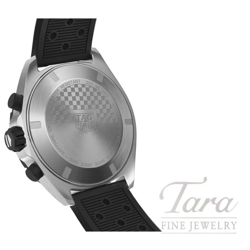 A high-precision quartz racing chronograph with an all-black dial and 200-meter water resistance. Inspired by motor-racing, this robust model is built for speed, endurance and audacity.