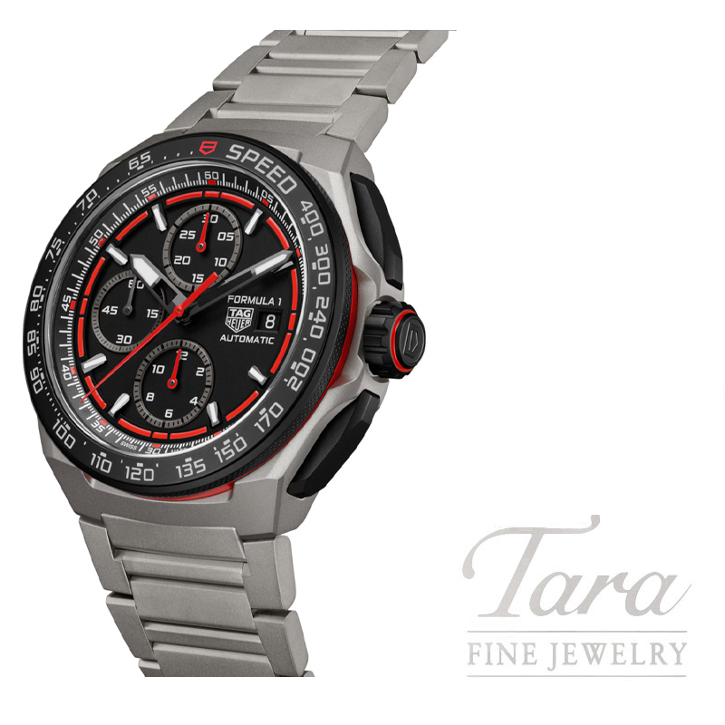 Built for boldness, this striking TAG Heuer Formula 1 Chronograph fuses titanium strength with sports-driven energy. This 44 mm diameter watch powered by the automatic Calibre 16 is designed to conquer speed, style, and every challenge in between.