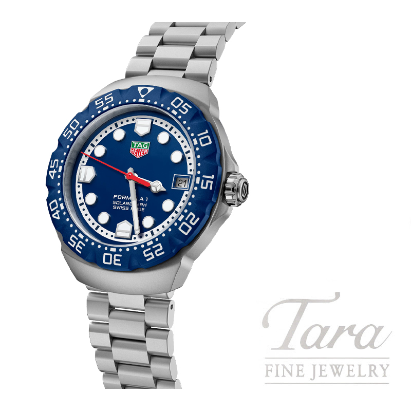 Inspired by the original Series 1 watch, the TAG Heuer Formula 1 Solargraph in 38mm expands the energetic aesthetic with a vibrant blue dial and sleek design. Combining a playful style with functionality, this solar-powered timepiece is made for trendsetters who value both style and innovation.