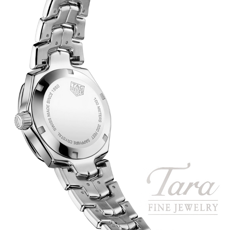 A 32mm stainless-steel, quartz-powered watch with 12 glittering diamond (0.116 CT) indexes on its luminous blue mother-of-pearl dial. Rhodium-plating on the hands and a silver polished TAG Heuer shield add extra luxury luster.