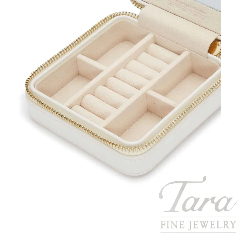 Fresh-faced and fun, Zoe is sophisticated but playful. Add romance to your travel accessories with the elegant floral embroidery and jewel-tone velvet travel round. The Zoe travel round includes a velvet exterior, LusterLoc™ interior, zip pouch, and mirror. LusterLoc™: Allows the fabric lining the inside of your jewelry cases to absorb the hostile gases known to cause tarnishing. Under typical storage conditions, it can prevent tarnishing for up to 35 years.